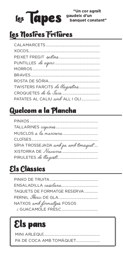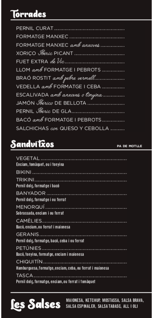 MAYONESA, KETCHUP, MOSTAZA, SALSA BRAVA, SALSA ESPINALER, SALSA TABASCO, ALL I OLI