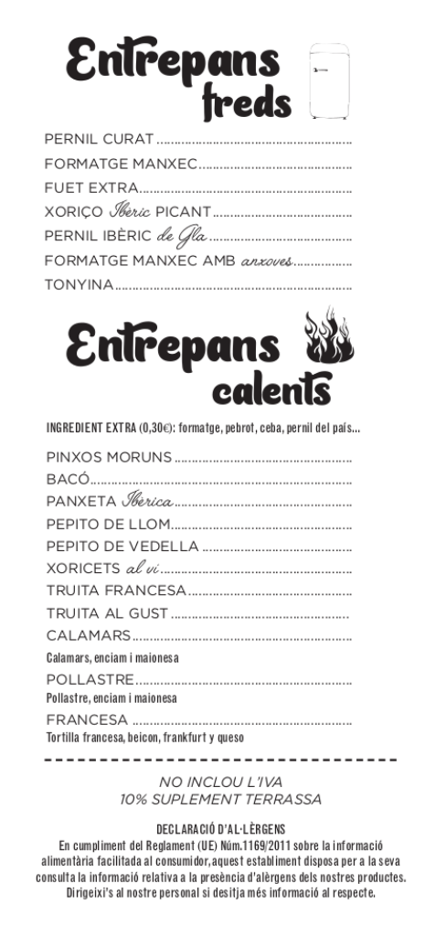 En cumplimiento del Reglamento (UE) Núm.1169/2011 sobre la información alimentaria facilitada al consumidor, este establecimiento dispone para su consulta la información relativa a la presencia de alérgenos de nuestros productos. Diríjase a nuestro personal si desea más información al respecto.