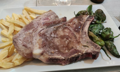 • ENTRECOTTE DE “GIRONA” CON PIMIENTOS DEL PADRÓN Y PATATAS NATURALES FRITAS